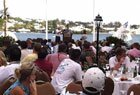 Event Wraps with Record Blue Marlin and Big Prizes A crowd of several hundred people gathered around the Bacardi-sponsored cocktail tent in Barrs Park, Bermuda, Saturday afternoon, eagerly anticipating of the arrival of Captain Russell Young’s local charter boat Sea Wolfe. Word had spread across the island that a big fish was on the way to the scales.